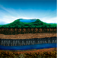 長白山玄武巖——火山噴發(fā)出的巖漿冷卻后凝固而成的一種巖漿巖,含45%--50%二氧化硅,具有良好的儲水、導(dǎo)水能力。
