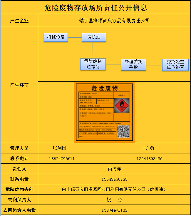 危險廢物存放場所責(zé)任公開信息